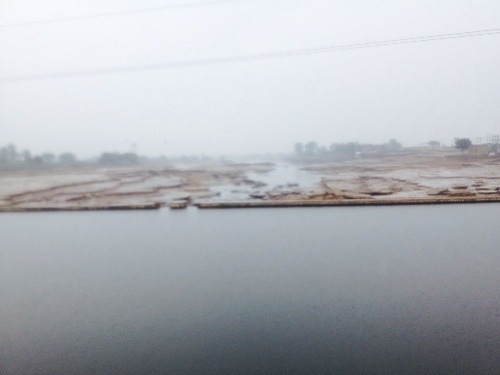 Die nächsten 100 km bis Shivpuri sind besser ausgebaut und wir kommen gut voran, jedoch zeigt sich langsam, das ein Dauerbad in Wasser auch gute Schuhe ertränken kann Trotz einer tollen hügeligen Landschaft mit einigen kurvigen bergauf und bergab Fahrten un gelb leuchtenden Rapsfeldern im dunstigen Regen, kommt kein richtiger Genuss auf, wenn die Füße anfangen zu schwimmen, die Handschuhe sind btw schon lange klatschnass. Eigentlich wollten wir in Shivpuri irgendwo Pause machen und Mittagessen, aber es will uns kein gefallendes Restaurant begegnen, so stoppen wir hinter Shivpuri und nutzen unsere Keks und Schoki Vorräte auf, währenddessen nutze ich meine Schuhe und Socken, um damit einige Blumen zu gießen. Ich schätze, dass etwa ein Liter Wasser ohne Auswringen im Schuh waren.