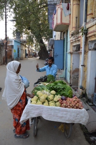 Am nächsten Morgen ist dann um 7 Uhr wieder die Nacht rum, wir wollen schließlich weiter nach Varanasi. Wir haben nur noch 120 km vor uns und so können wir die Tour auf einer gut ausgebauten Autobahn in 3 h hinter uns bringen. Als wir das Rahul Guesthouse in Varansi erreichen ist es gerade Mittag und wir genießen den Blick vom Roof Top auf den Ganges und die gesamte Ghat Kurve. Hier im Hotel haben wir den besten Blick auf den Ganges, sogar vom Bett aus, wir genießen ein vegetarisches Mittagsmahl, und schlendern dann nochmal los, um das Leben in den Gassen zu genießen.